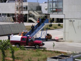 Na zemi pod schody olamanej obklad letistni budovy a vymontovane sedacky z vestibulu aby sel spravit i zezhora. Ja to vidim na kolizi.
