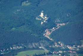 Pohled na hrad Karlštejn během přiblížení k letišti v Praze Ruzyni