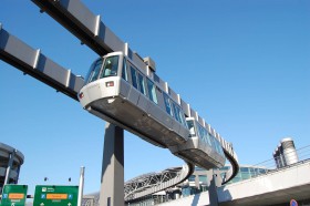 Automaticky řízený SkyTrain spojuje odbavovací halu letiště s železniční stanicí vlaků InterCity