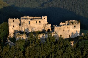 Litavský (Lietavský) hrad v posledních paprscích slunce. Tento hrad se nachází mezi Žilinou a Rajeckými Teplicemi. Foceno z Cessny C-152 OK-MDK.