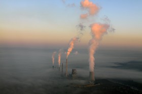 Ranní let z Roudnice do Ostravy na Dny NATO. Tepelná elektrárna Horní Počaply.