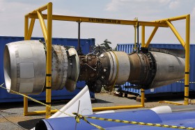 Motor PW JT-3D3B používaný na Boeingu 707 jihoafrického vojenského letectva. Šedivé segmenty na vstupním ústrojí sloužily k přisávání vzduchu při maximálním výkonu motorů.