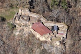 Zřícenina hradu Krašov na levém břehu řeky Berounky nedaleko Kralovic.