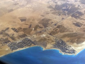 27.09. Egyptské pobřeží Středozemního moře. Hotelová zóna západně od El Alameinu nedaleko letiště El Alamein International. Fotografováno z OK-NES.