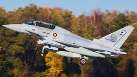 Jeden ze dvou zbrusu nových Eurofighterů katarského letectva, které dnes krátce po poledni přilétly pro palivo během dodávacího letu z britského Wartonu do Kataru. Konkrétně u tohoto letounu (s budoucí registrací QA401) se zároveň jedná o úplně první spárku u Qatar Emiri Air Force.
