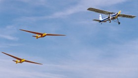 Airshow on the occasion of the 80th anniversary of gliding at the Brno Medlánky Airfield. A remotored L-60S Brigadýr (wfu 2013) towing 2 LG-125 Šohajs 2.